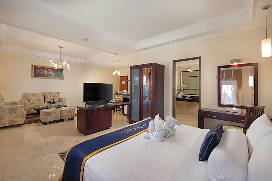 Spacious room comes with a sofa set, flat-screen TV and a dining area. Bathroom has a bathtub.
